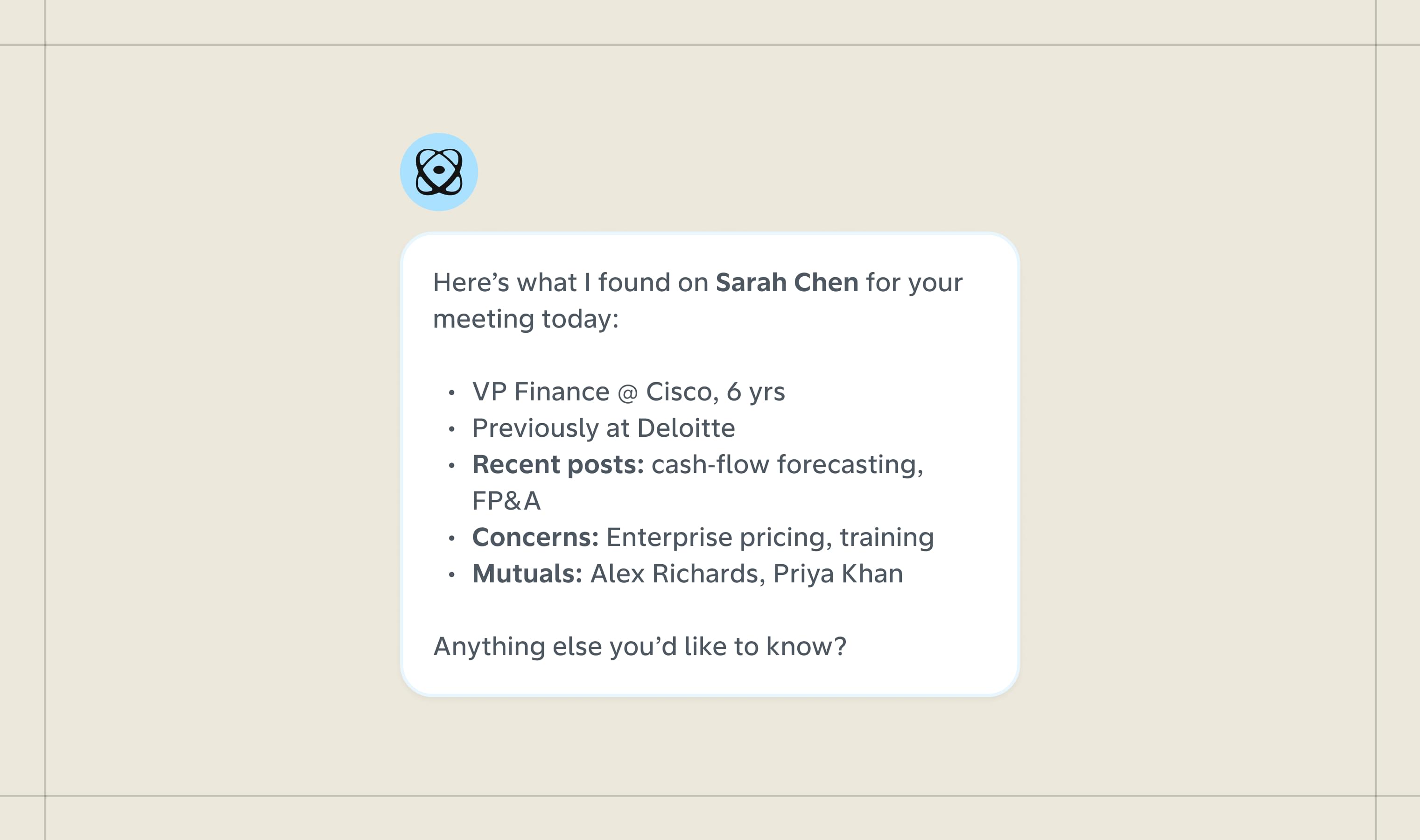 The prep you do before a call matters as much as the call itself. Most people skip it entirely, or spend ten minutes frantically clicking through records and email threads right before joining.